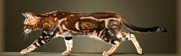 Le Charcoal : Ce type de bengal est vraiment à part, et personnellement, je trouve ces bengals vraiment magnifiques. Génétiquement le charcoal est identifié par le gène "Apb" qui se décompose comme ceci : "A"pour le agouti, et "pb" pour Prionailurus Bengalensis qui n'est autre que l'ancêtre du bengal, le léopard d'asie (ALC = Asian Leopard Cat). Le Charcoal se décline sur toutes les couleurs : snow, brown, silver... Physiquement il est facilement reconnaissable, car il a la particularité unique d'avoir une sorte de masque foncé au niveau de la tête, en plus bien evidemment, d'une robe avec un effet charbonné, d'où son nom.